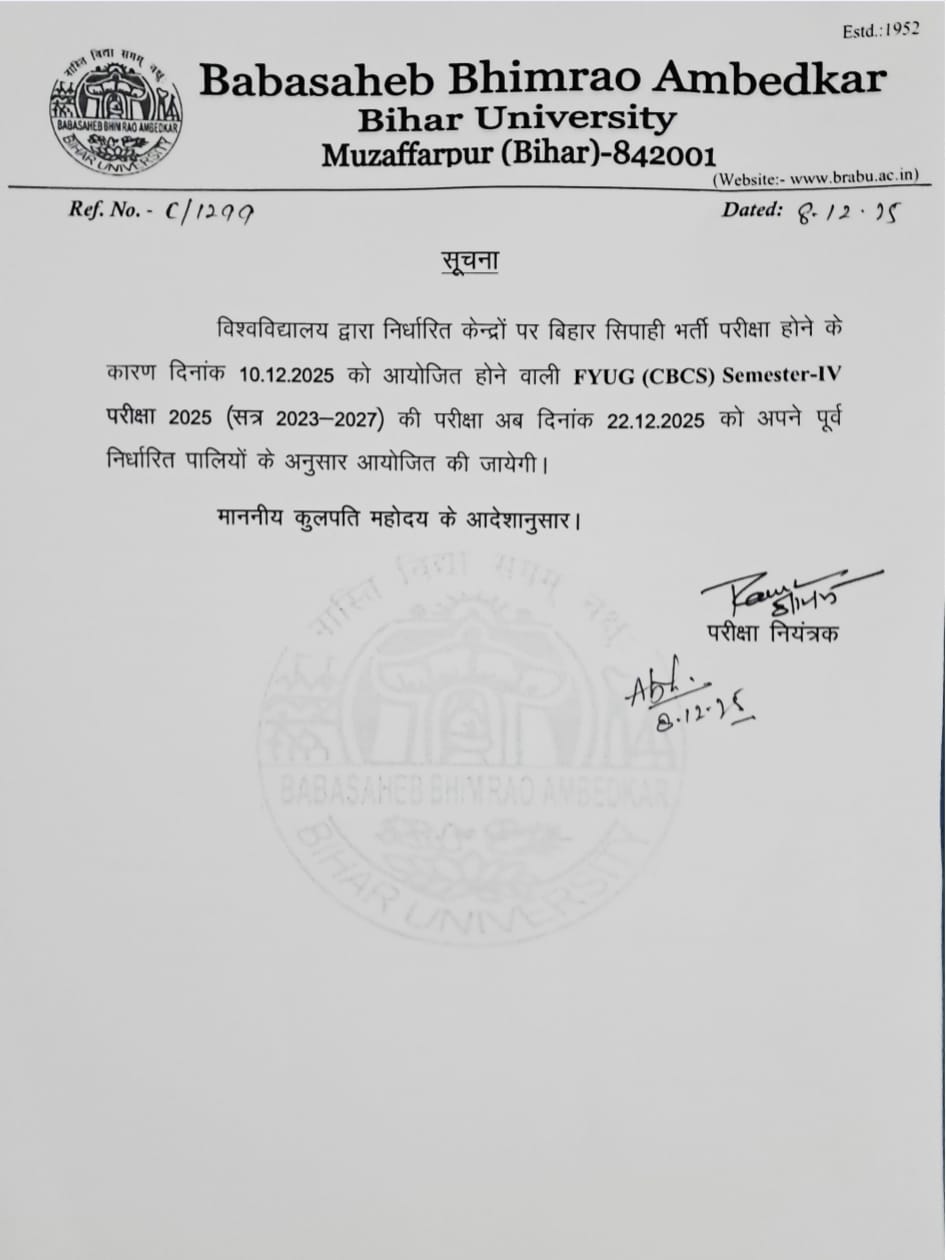 Semester - IV Exam dated 10.12.2025 is cancil and reschuedule on dated 22.12.2025